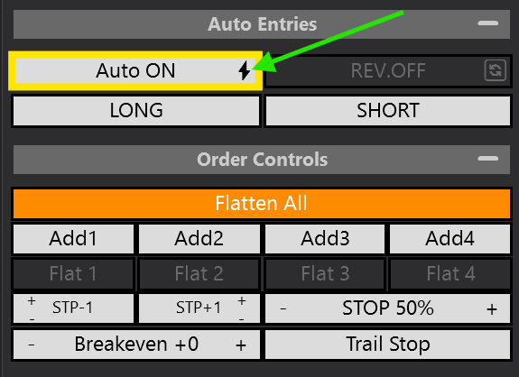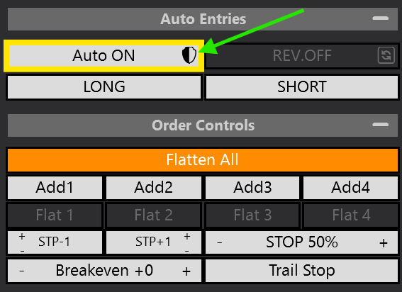 These options can also be controlled via buttons in the chart trader panel under the Auto Entries section.
