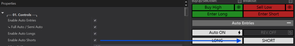 Under 01. Controls. Your first 3 options will help you control when or if your strategy will take any Auto Entries defined under 02B. Auto Entries.