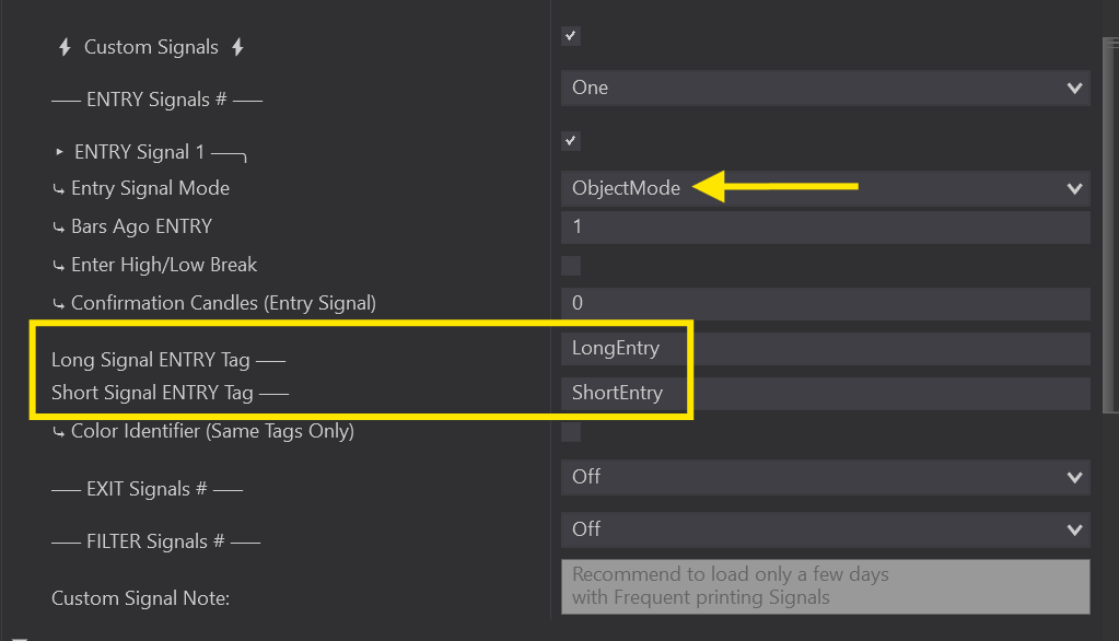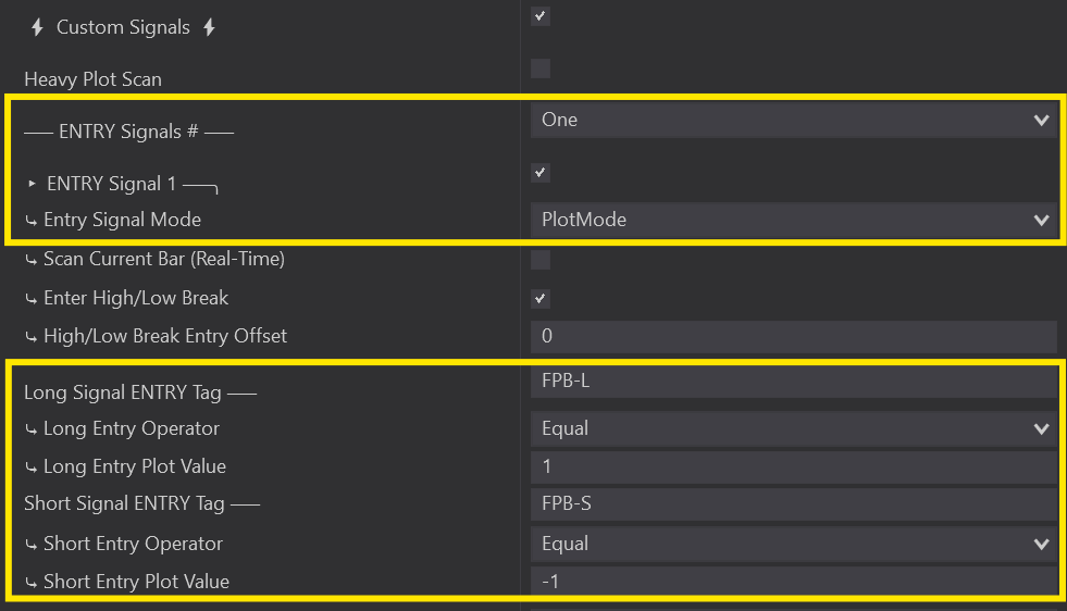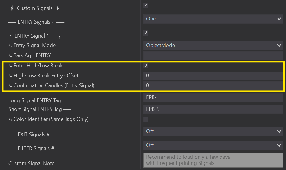 Under Auto Entries, select Custom Signals to open up all the Custom Signal Properties.