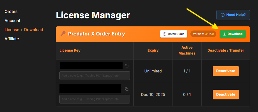 ⤷ The LT version of the Predator can be found by login in → My Account → License + Downloads.