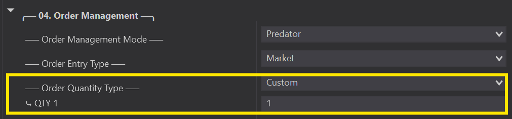 Note that each additional profit target that you add with the Predator will require a minimum EXTRA QTY of 1 for each.